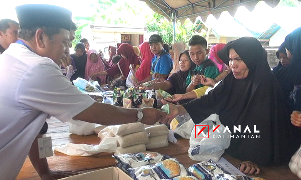 Pasar murah Ramadhan yang dilakukan Disperindagkop HSU bekerjasama dengan Bulog dan Wings Food langsung disambut antusias ratusan warga desa Kaludan, Kecamatan Banjang.