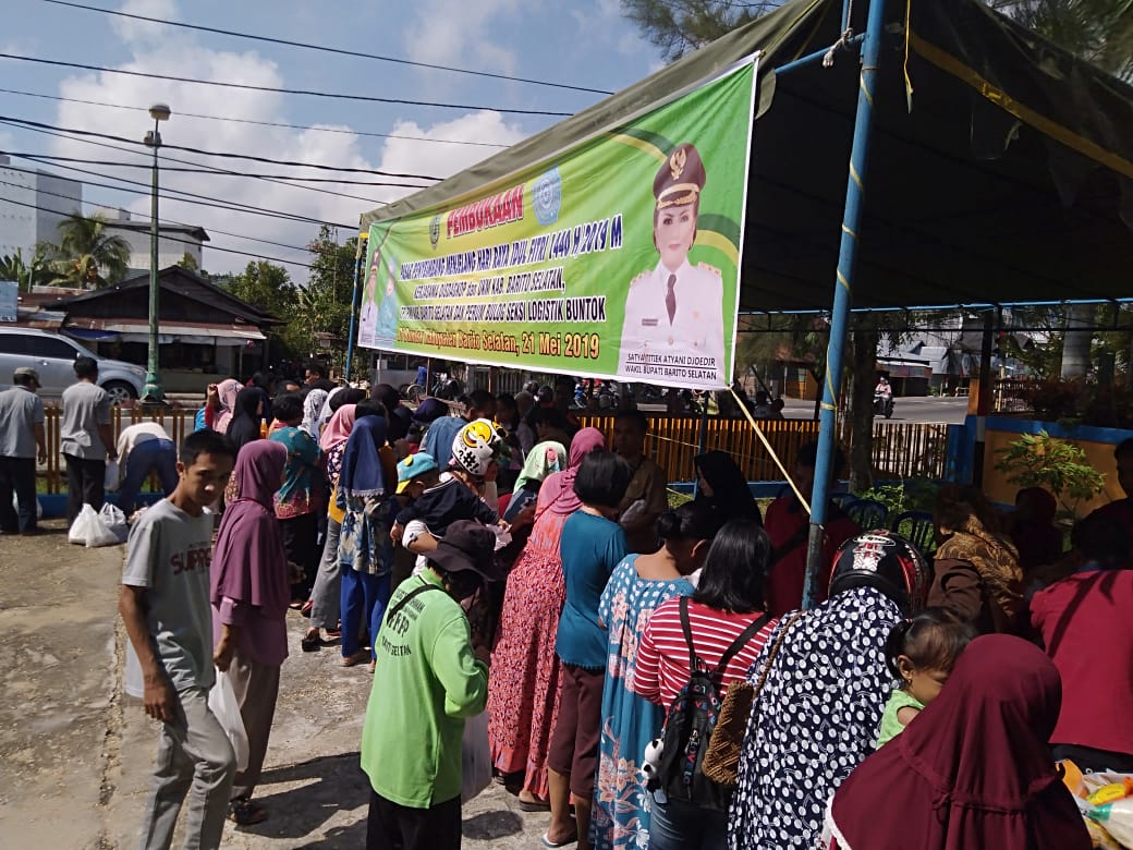 BUNTOK, Menjelang Hari Raya Idul Fitri 1440 H, Pemkab Barito Selatan (Barsel) menggelar pasar murah di halaman Kantor Kansilog Selasa (21/5). Pasar penyeimbang ini dilaksanakan oleh Disdagkop dan UKM Barsel bekerjasama dengan TP PKK Barsel serta dengan Perum Bulog Seksi Logistik Buntok.