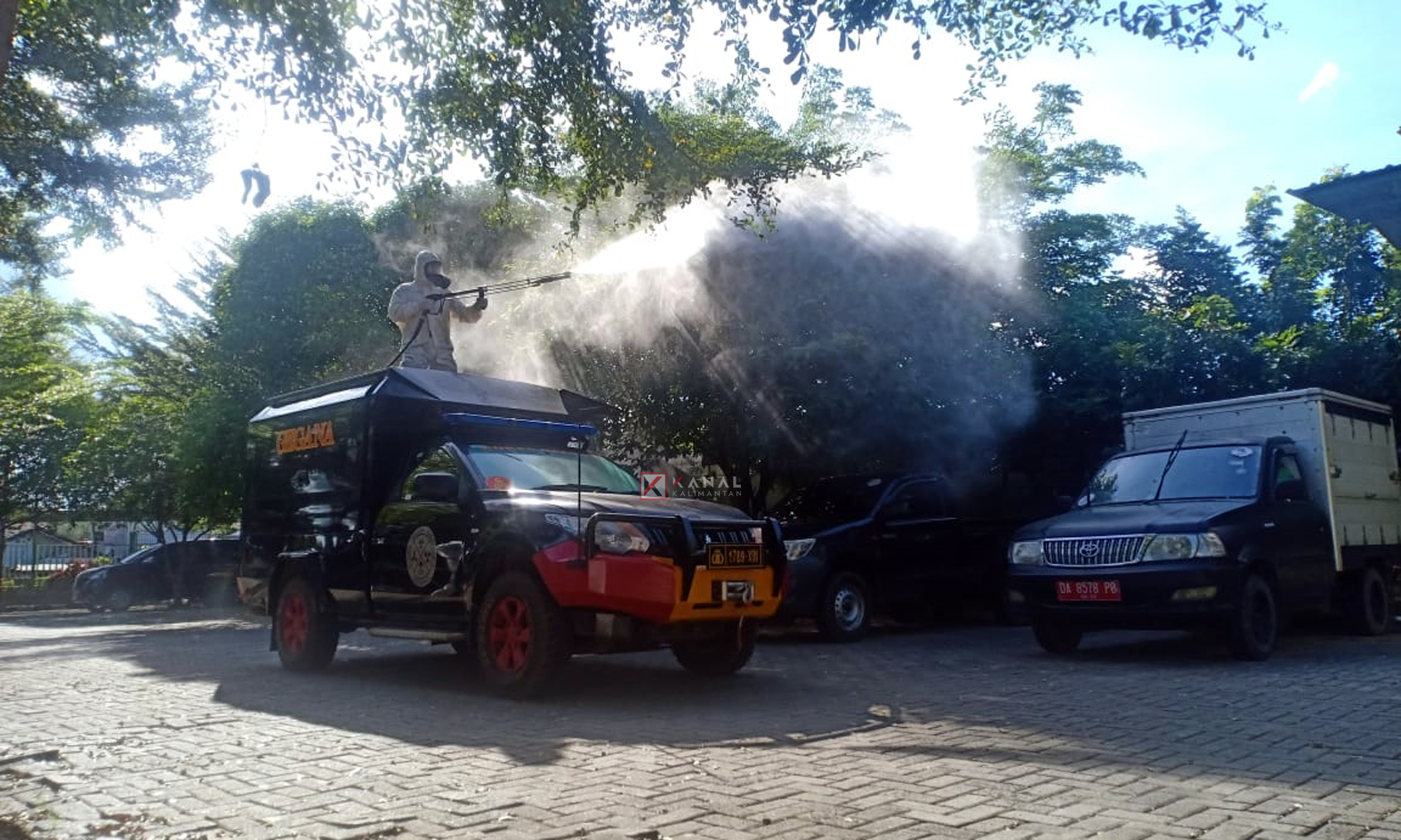 Dalam hal ini, setidaknya empat unit armada tangki air milik BPBD dan tim Gegana Brimob Polda Kalsel dikerahkan untuk melakukan penyemprotan di area halaman Balai Kota Banjarbaru. Termasuk, seluruh isi ruangan perkantoran juga tak luput dari penyemprotan disinfektan.