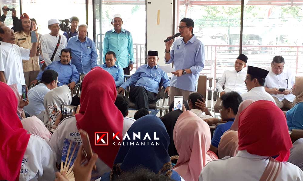 BANJARMASIN, Calon wakil presiden dari pasangan calon (paslon) nomor 02, Sandiaga Uno kembali berkunjung ke Kalsel dengan rangka safari Ramadhan. Ia melakukan silaturahmi relawan dan mengucapkan terima kasih kepada para relawan atas kemenangan paslon 02 di Kalsel.