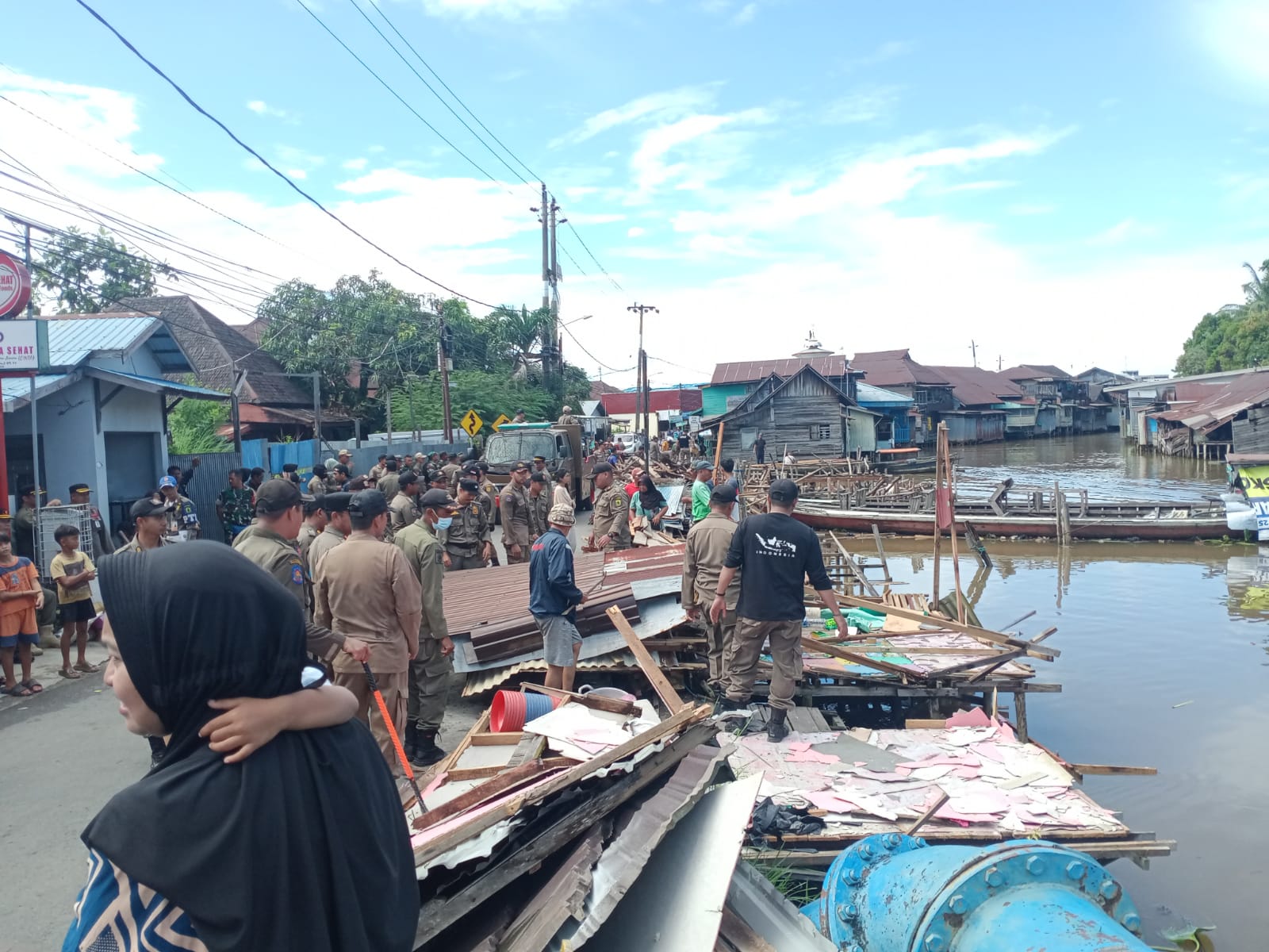 Bangunan yang dibongkar terdiri dari 4 kios kecil dan 1 galangan berdiri tanpa izin di bantaran Sungai Miai.