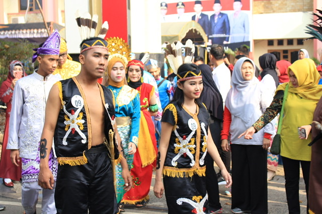AMUNTAI, Pawai Karnaval Pemuda semarakkan peringatan Hari Sumpah Pemuda ke-91 berlangsung semarak dengan diikuti ribuan pelajar bersama warga masyarakat di Kabupaten Hulu Sungai Utara (HSU), Minggu (27/10). Pawai diprakarsai Dewan Perwakilan Daerah (DPD) Komite Nasional Pemuda Indonesia (KNPI) HSU ini a menampilkan berbagai macam pakaian adat di seluruh Indonesia.