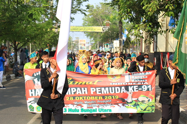Dikatakannya, hari peringatan sumpah pemuda tahun 2019 ini mengusung tema “Gelorakan Semangat Sumpah Pemuda Kita Galang Persatuan dan Kesatuan Bangsa” dimana disini meutamakan persatuan dan kesatuan para pemuda. “Pemuda adalah penerus bangsa dan pemuda adalah agen perubahan yang akan membangun Kabupaten HSU,” imbuhnya.