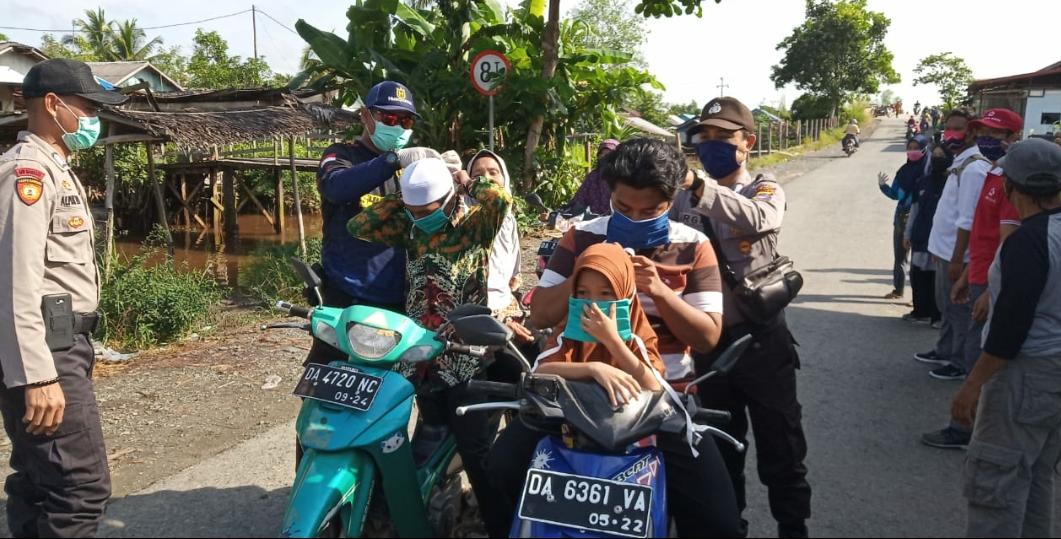Di kesempatan yang sama, Camat Tamban Agus Supriadi menambahkan, pembagian masker di wilayah Desa Purwosari Baru dilakukan sekaligus memberikan edukasi kepada masyarkat untuk menggunakan masker ketika bepergian ke luar rumah.