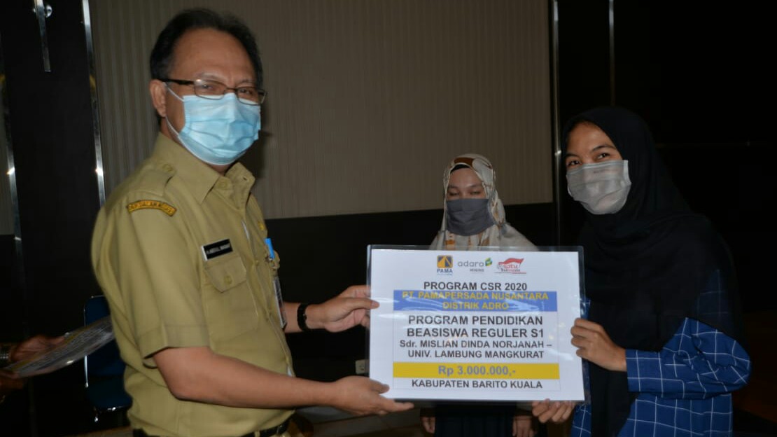KANALKALIMANTAN.COM, MARABAHAN – 10 mahasiswa berprestasi dari keluarga kurang mampu di Kabupaten Barito Kuala (Batola) mendapatkan beasiswa dari kerjasama Pemkab dengan PT Pamapersada Nusantara Distrik Adaro.