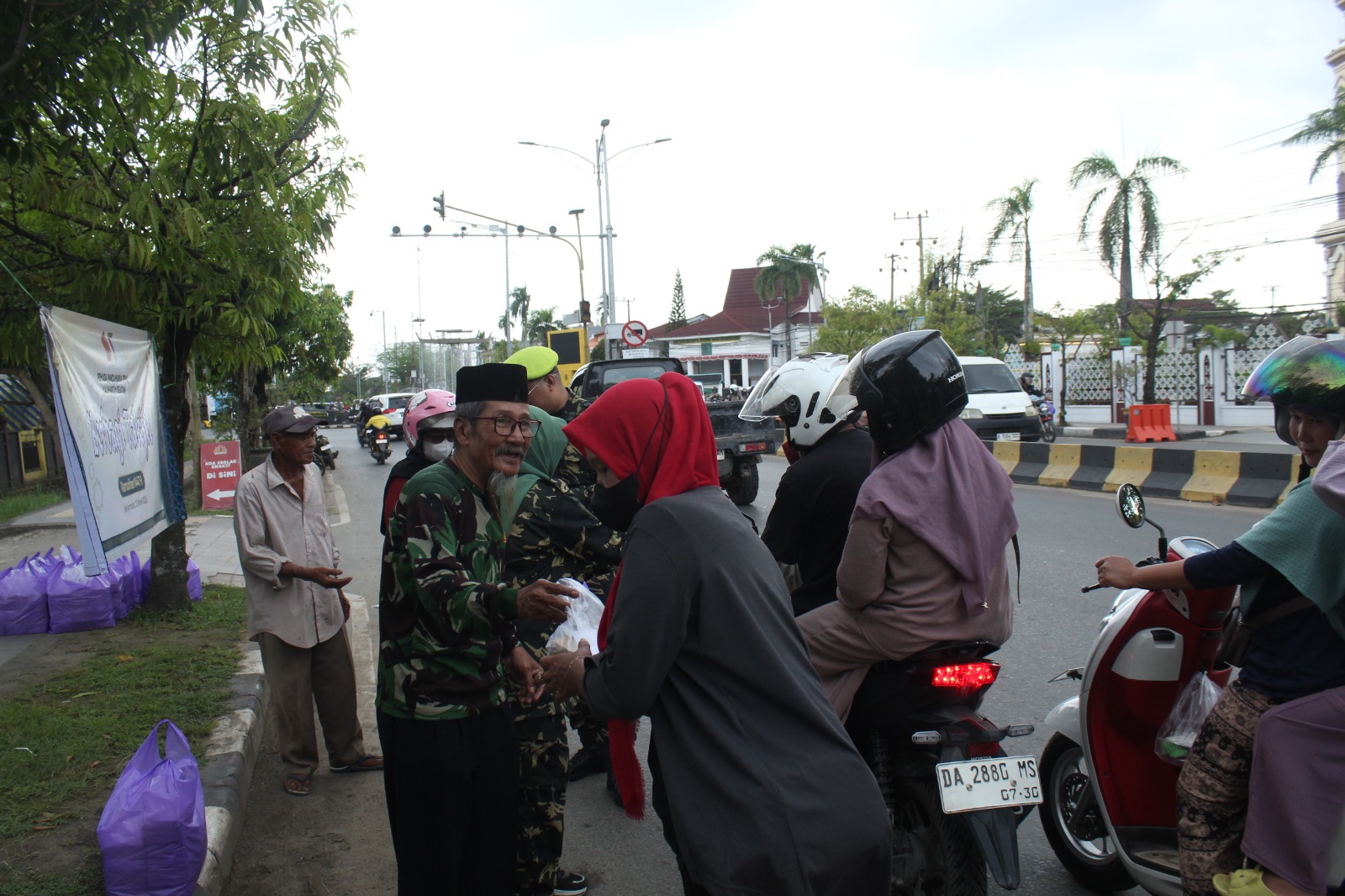 Kegiatan berbagi takjil berlangsung tertib dan penuh kebersamaan. Antusiasme masyarakat juga tinggi di mana hanya dalam waktu singkat, paket takjil habis dibagikan. (Kanalkalimantan.com/fahmi)