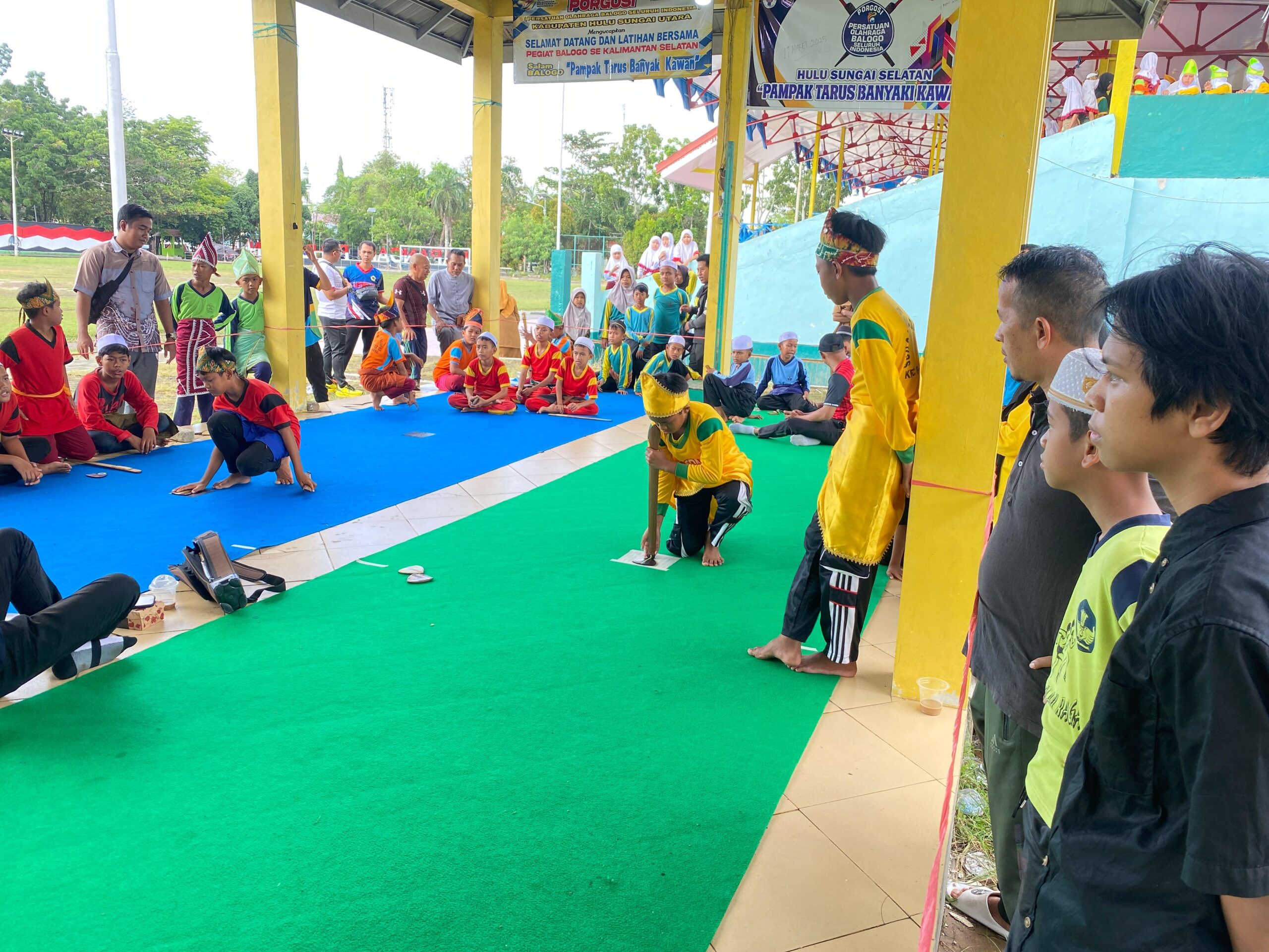 Permainan tradisional yang berlangsung di Tribun Lapangan Pahlawan Amuntai dihadiri oleh Ketua Penggiat Balogo Kabupaten HSU, Anggota DPRD Komisi II Kabupaten HSU, Kasi Bidang SD dan Sekertaris Disdikbud HSU.