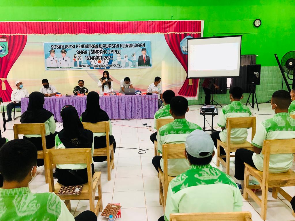 KANALKALIMANTAN.COM, BATULICIN – Sosialisasi pendidikan wawasan kebangsaan Sekolah Menengah Atas Negeri (SMAN) 1 Simpang Empat Kabupaten Tanah Bumbu, Rabu (16/3/2022).