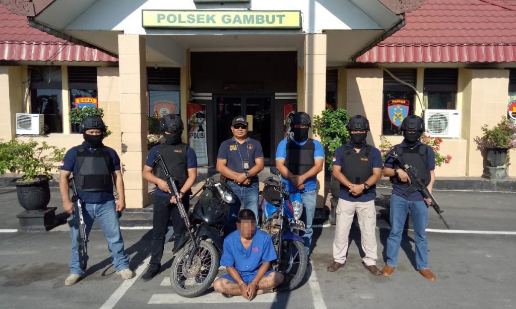 Bersama Tim Khusus Antisipasi Premanisme (Tekap) Polres Banjar, Polsek Gambut langsung meluncur ke Desa Pemangkih Baru Kecamatan Tatah Makmur Kabupaten Banjar dan berhasil mengamankan Ahim beserta barang bukti sepeda motor Honda Revo warna Hitam No. Pol DA 2813 JY yang digunakan sebagai sarana saat aksinya pada sabtu malam tersebut.