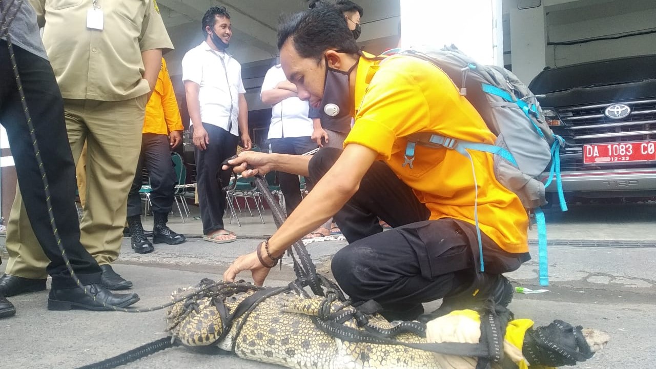 Tim Animal Resque mengatakan bahwa buaya yang dievakuasi diantar kepada petugas Balai Konservasi Sumber Daya Alam (BKSDA) Kalsel. (kanalkalimantan.com/putra)