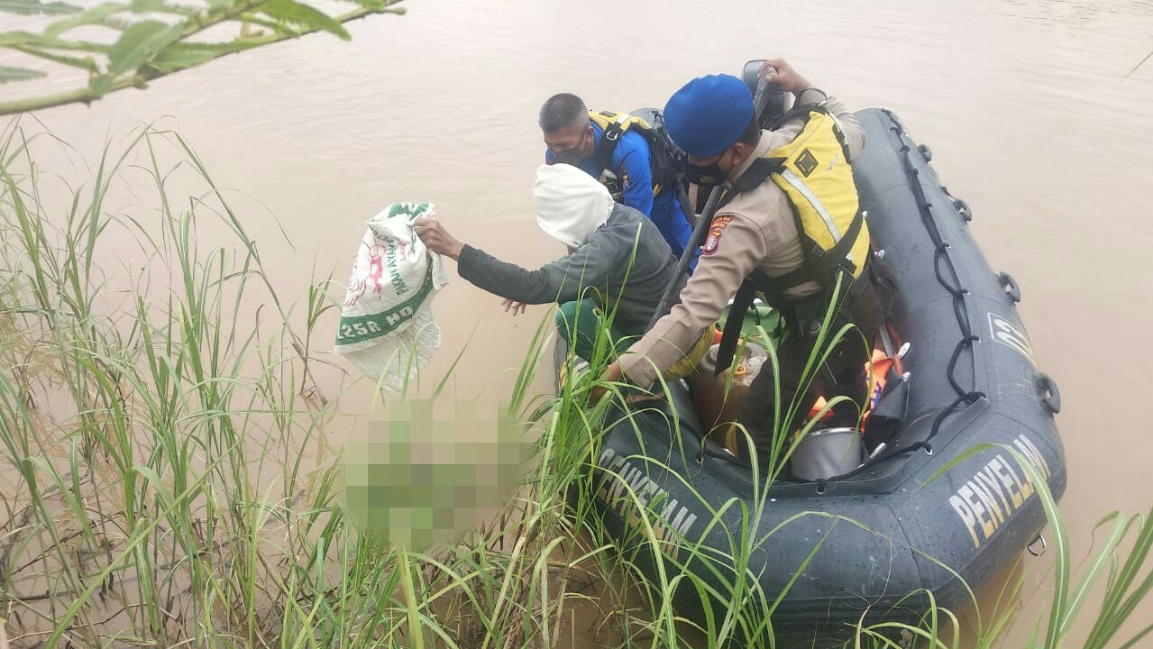 Tak lama berselang mayat bayi tersebut akhirnya berhasil diangkat dan dievakuasi, saat itu dalam kondisi telah mengambang pada permukaan air di daerah aliran sungai tersebut.
