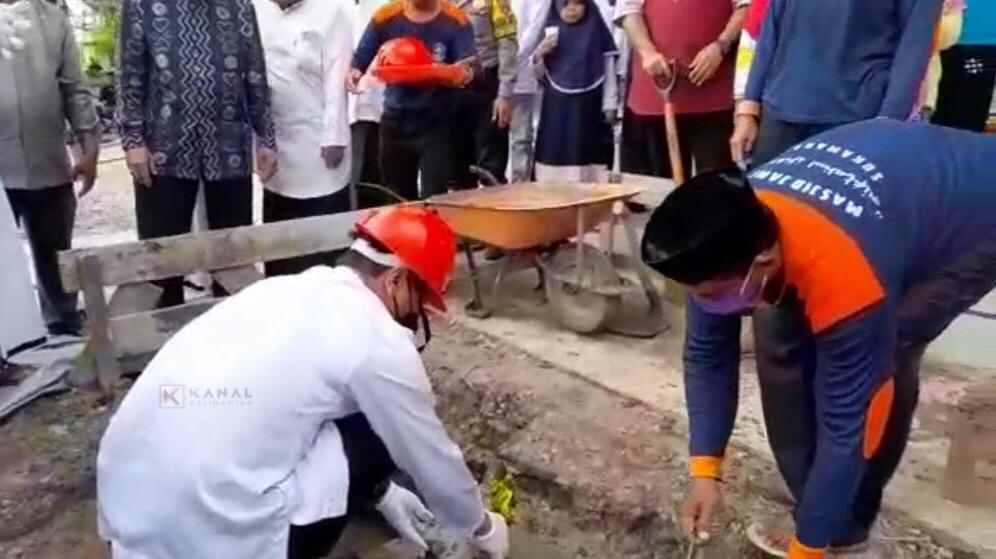 Peresmian pembangunan TPQ yang lokasinya berada di kawasan Masjid Miftahul Ihsan Sukmara ditandai dengan peletakan batu pertama.