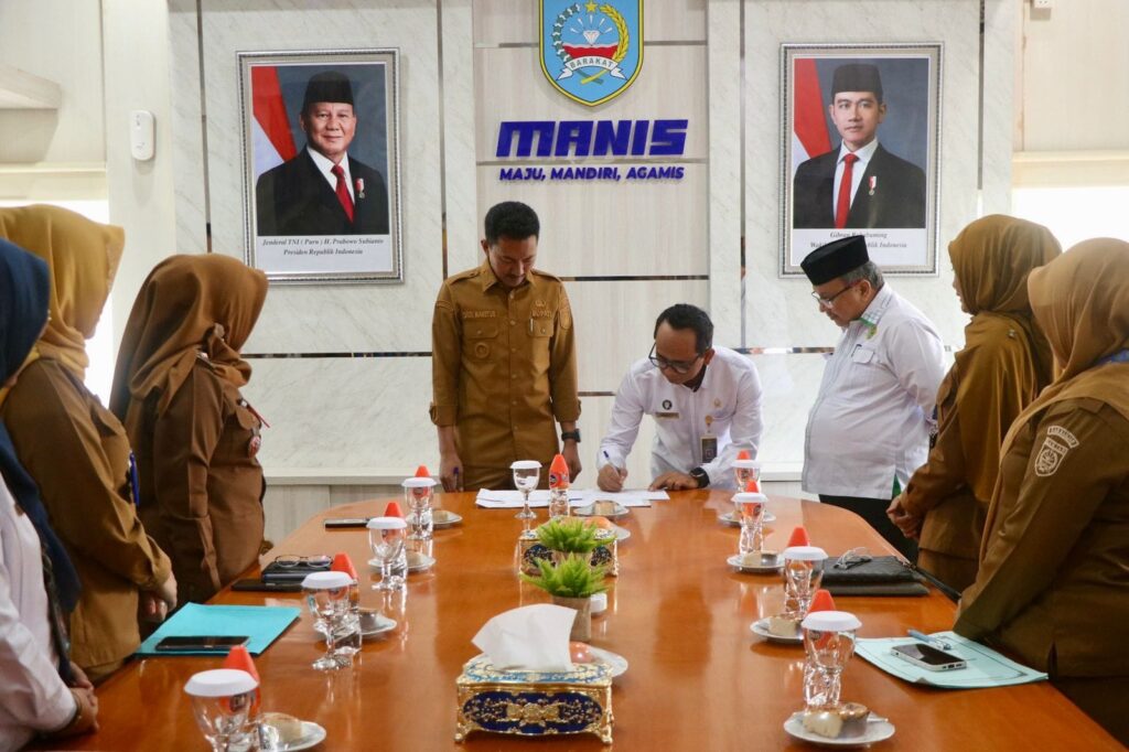 KANALKALIMANTAN.COM, MARTAPURA – Nota kesepakatan bersama tentang pelayanan terpadu dan konseling perkawinan usia dini ditandatangani oleh Pemerintah Kabupaten Banjar bersama Pengadilan Agama Martapura Kelas IA dan Kantor Kementerian Agama Kabupaten Banjar, Senin (27/10/2025) pagi.