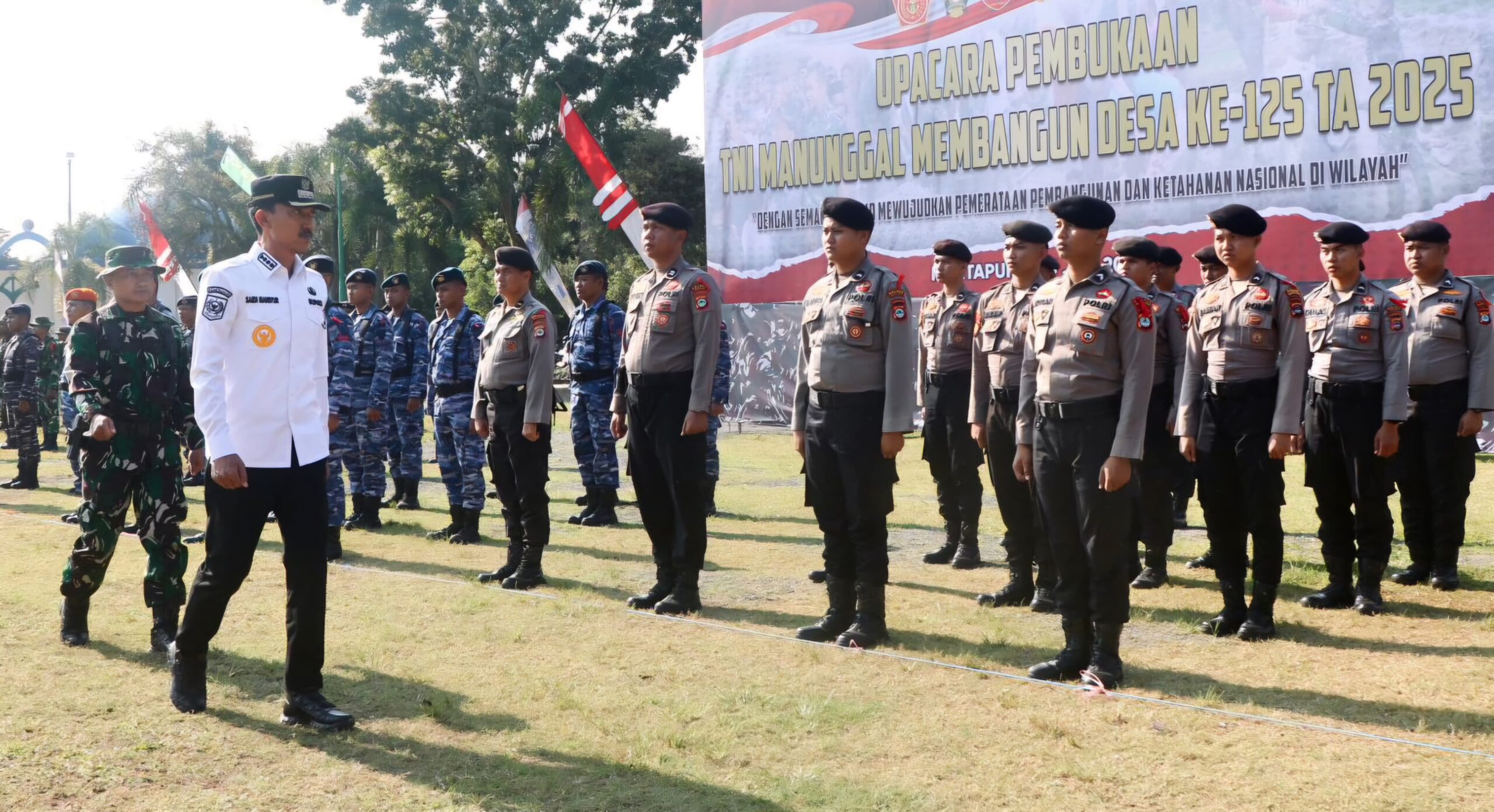 KANALKALIMANTAN.COM, MARTAPURA – Bupati Banjar menjadi inspektur upacara pada pelaksanaan TNI Manunggal Membangun Desa (TMMD) ke-125 Tahun Anggaran 2025 di Alun-alun Ratu Zalecha, Martapura, Rabu (23/7/2025) pagi.
