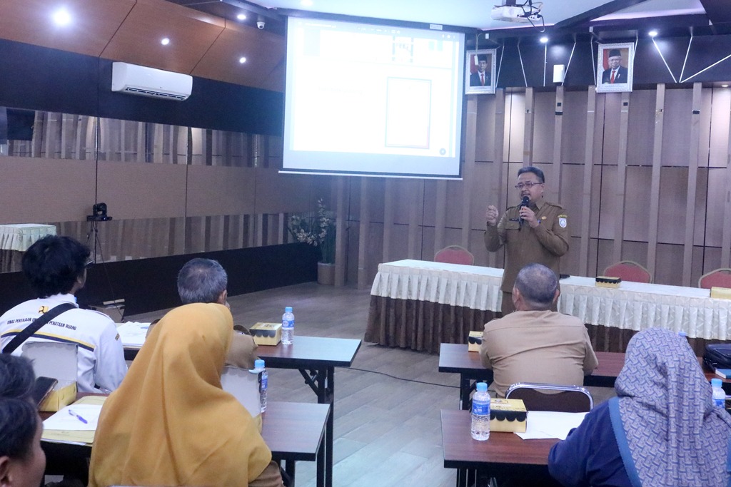 Kabid Penyelenggaraan E-Government DKISP Banjar Cornelius Kristiyanto memaparkan tentang smart city di Kabupaten Banjar yang sudah lima kali dievaluasi.