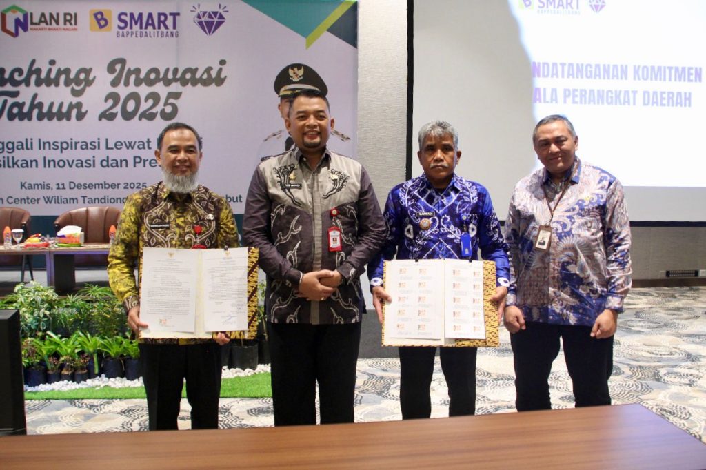 Sebagai bentuk komitmen bersama, kegiatan diakhiri dengan penandatanganan Perjanjian Inovasi Daerah oleh seluruh kepala perangkat daerah.