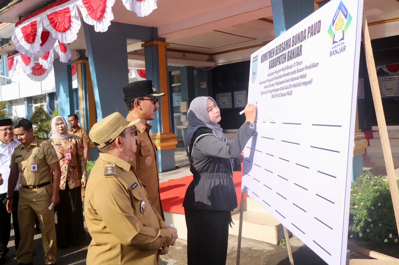 Turut dilakukan penandatanganan Komitmen Bersama Forkopimda dalam mendukung Program TUNTAS BANJAR, Wajib Belajar 13 Tahun, Pendidikan Karakter, serta Optimalisasi PAUD Holistik Integratif.