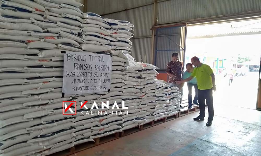 BUNTOK, Pemkab Barito Selatan (Barsel) melalui Bagian Perekonomian Setda memeriksa kualitas untuk Bantuan Sosial (Bansos) Beras Sejahtera di gudang Kansilog Bulog, Jumat (2/8).