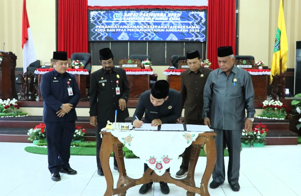 Kesepakatan bersama tersebut ditandatangani dalam rapat paripurna DPRD HSU yang dihadiri Penjabat (Pj) Bupati HSU Zakly Asswan dan Ketua DRPD HSU Almien Anshar Safari, Kamis (25/7/2024) siang.