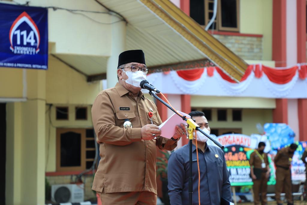 Bertema “Ayo Bangkit Bersama”, Pelaksana Tugas (Plt)Bupati HSU, Husairi Abdi bertindak sebagai pembina upacara pada Harkitnas tahun 2022.