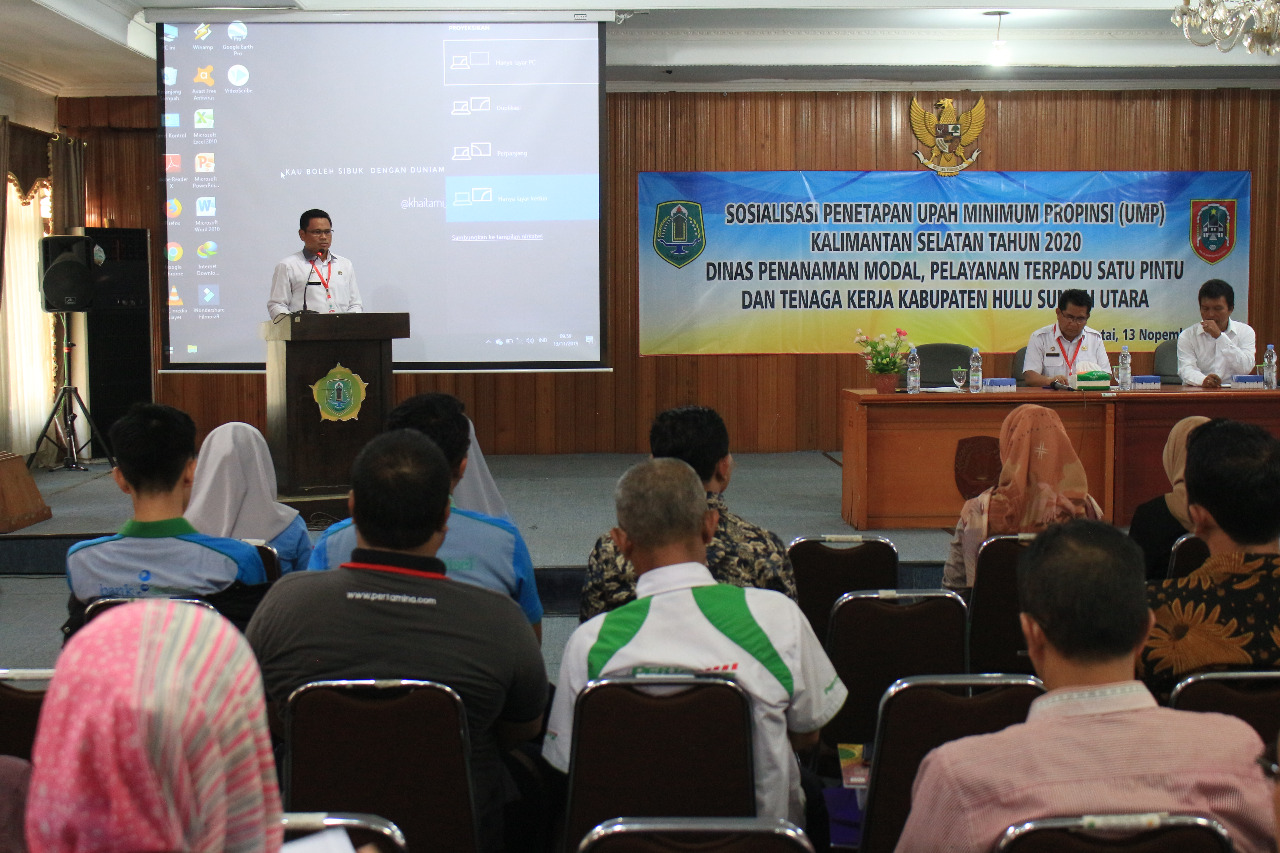 Kepala DPMPTSP Naker HSU Syarif Fajerian Noor mengatakan, tujuan kegiatan sosialisasi ini untuk memberikan pemahaman tentang UMP Kalsel tahun 2020, memberikan penjelasan kepada semua pimpinan direktur perusahaan dan pekerja tentang UMP yang baru.