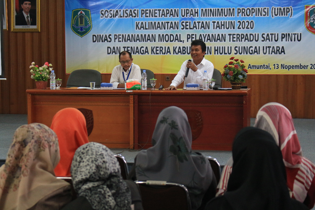 Kenaikan berdasarkan Keputusan Gubernur Kalsel nomor 188.44/0868/kum/2019 tentang penetapan Upah Minimum Provinsi tahun 2020 yang ditanggapi Pemerintah Kabupaten Hulu Sungai Utara (HSU) melalui Dinas Penanaman Modal, Pelayanan Terpadu Satu Pintu dan Tenaga Kerja (DPMPTSP Naker) dengan menggelar sosialisasi penetapan upah minimun Provinsi Kalimantan Selatan tahun 2020 kepada perusahaan, BUMN/BUMD, swasta, Perorangan di wilayah HSU.