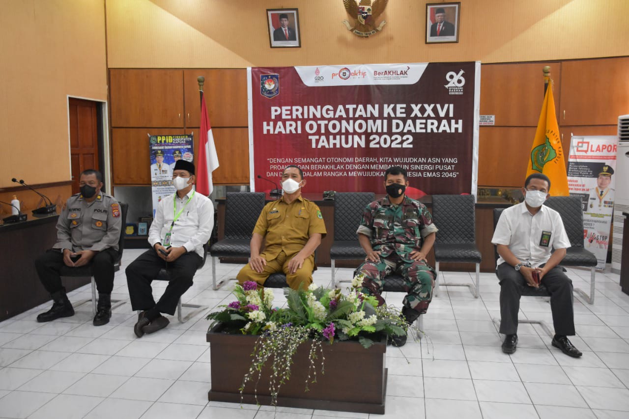 KANALKALIMANTAN.COM, KUALA KAPUAS – Pemerintah Kabupaten (Pemkab) Kapuas mengikuti peringatan Hari Otonomi Daerah (Otda) ke-XXVI tahun 2022 secara virtual di ruang rapat Bupati Kapuas, Senin (25/4/2022).