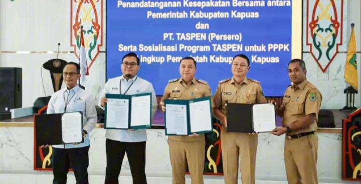 KANALKALIMANTAN.COM KUALA KAPUAS – Pemerintah Kabupaten Kapuas menandatangani kesepakatan bersama dan perjanjian kerja sama dengan PT Taspen Cabang Palangkaraya sebagai upaya memperkuat jaminan perlindungan dan kesejahteraan Aparatur Sipil Negara (ASN) khusus Pegawai Pemerintah dengan Perjanjian Kerja (PPPK), Senin (9/2/2026).