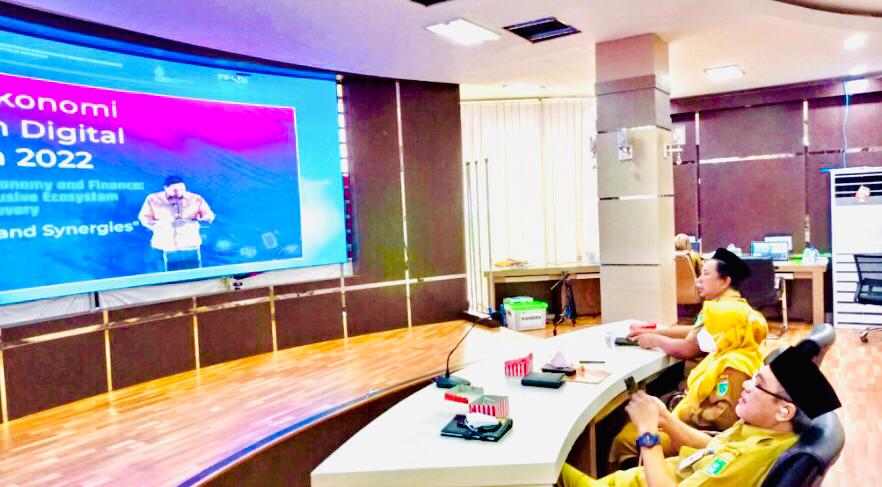 Kegiatan FEKD ini digelar di Denpasar, Bali dan terhubung ke DLR kantor Bupati Tanah Bumbu secara virtual diikuti oleh Asisten Pemerintahan dan Kesejahteraan Rakyat, Hj Mariani serta Asisten Ekonomi dan Pembangunan, Rahmat Prapto Udoyo, Senin (11/7/2022).