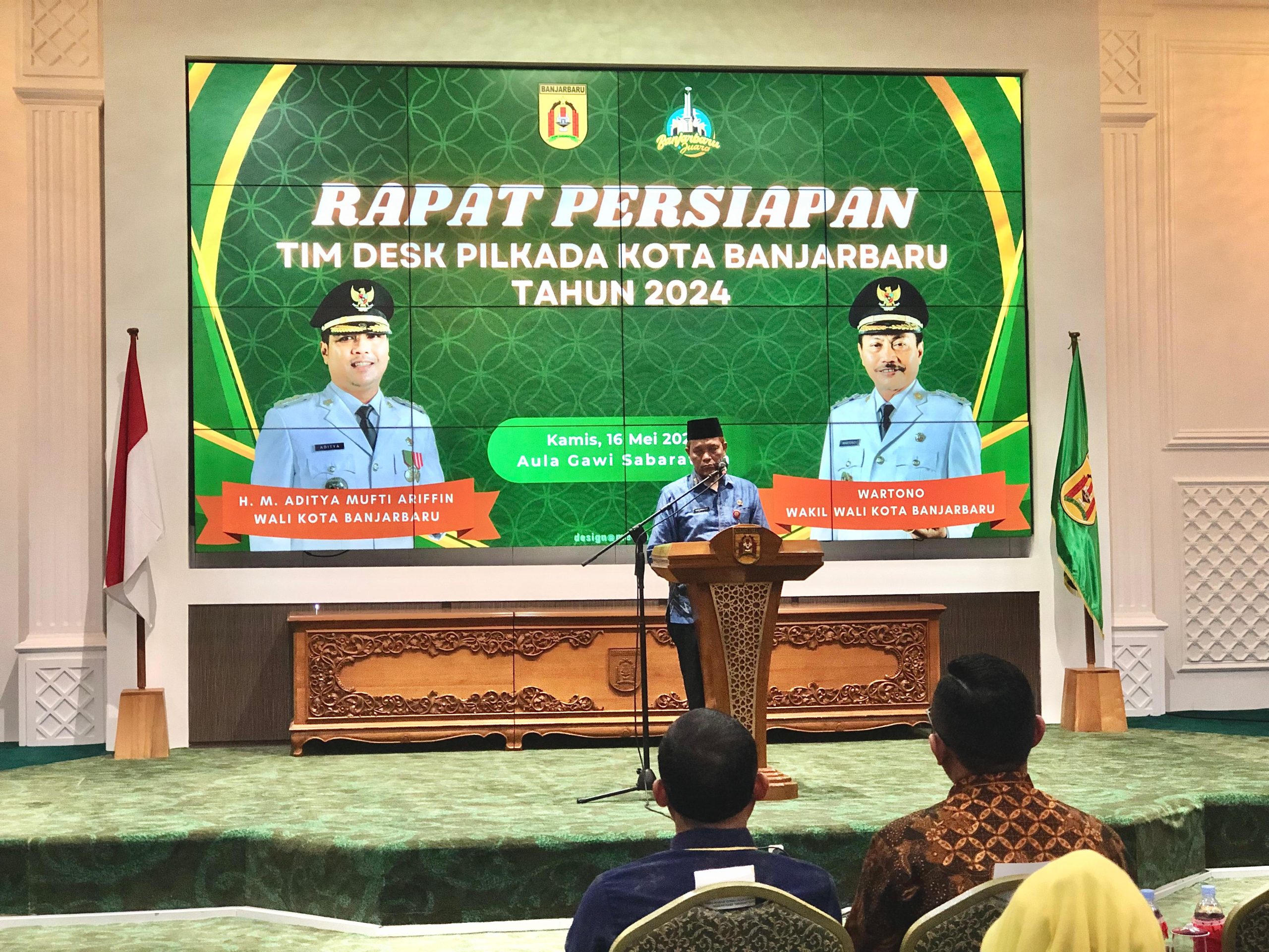 Dalam rapat persiapan, hadir Ketua KPU Banjarbaru Rozy Maulana beserta Ketua Bawaslu Kota Banjarbaru Nor Ikhsan.