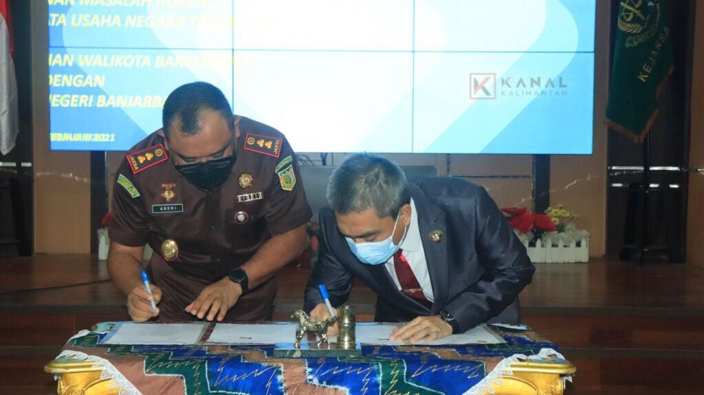 KANALKALIMANTAN.COM, BANJARBARU – Wali Kota Banjarbaru Darmawan Jaya Setiawan bersama Kejaksaan Negeri (Kejari) Banjarbaru menandatangani kesepakatan bersama dalam upaya penanganan masalah hukum di bidang perdata dan Tata Usaha Negara (TUN) pada tahun 2021.