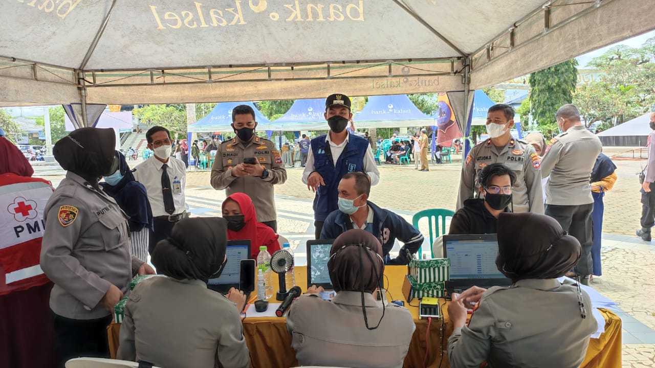 Vaksinasi serentak ini kerjasama Polres Banjar, Bank Kalsel, dan Dinas Kesehatan Kabupaten Banjar di pertokoan CBS.