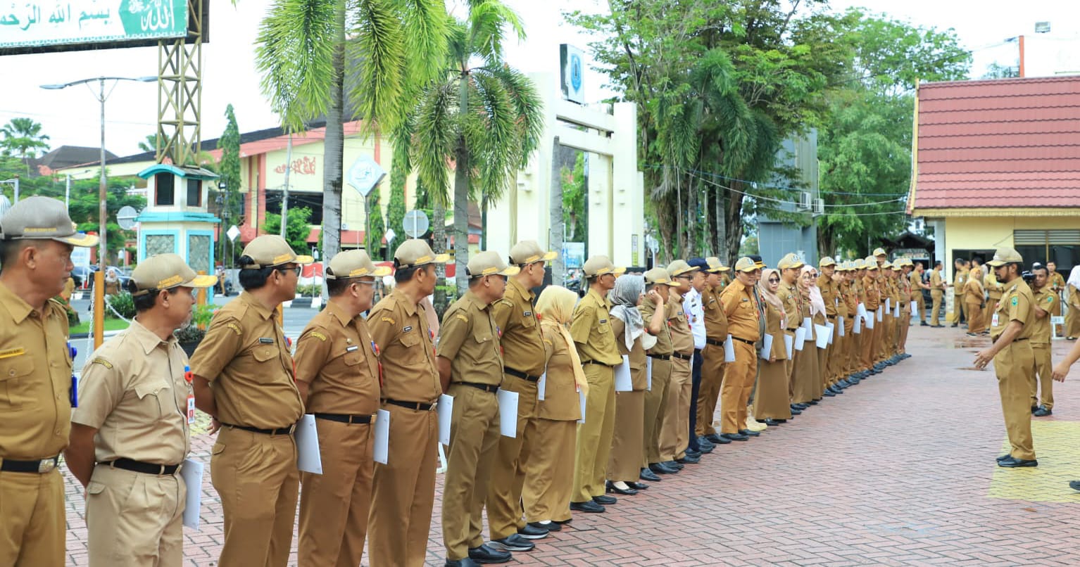 KANALKALIMANTAN.COM, AMUNTAI – Pemerintah Kabupaten Hulu Sungai Utara (HSU) melaksanakan apel gabungan sekaligus penandatangan perjanjian kinerja dan pakta integritas tahun 2024 antara Kepala SKPD dengan Penjabat (Pj) Bupati HSU, Senin (5/2/2024).