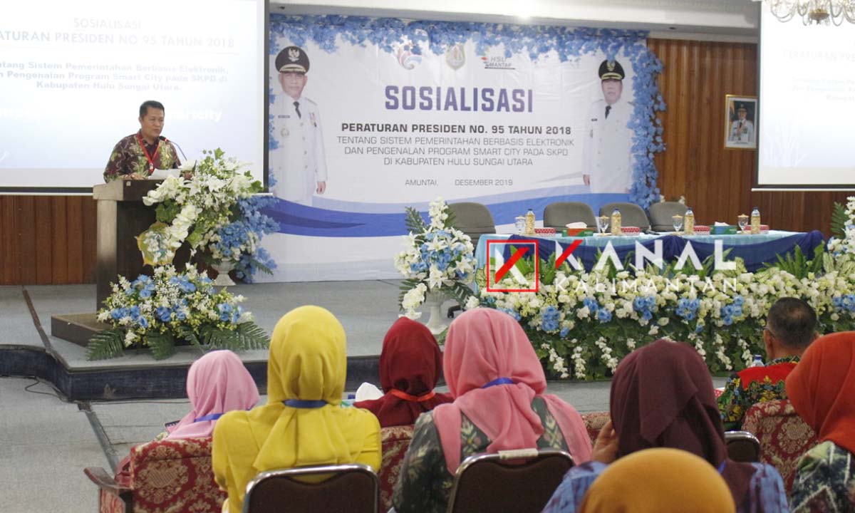 AMUNTAI, Merujuk Perpres nomor 95 tahun 2018 tentang Sistem Pemerintahan Berbasis Elektronik (SPBE) menuju Smart City, membuat Dinas Komunikasi dan Informatika (Diskominfo) Hulu Sungai Utara (HSU) menggelar sosialisasi ke seluruh SKPD di lingkungan Pemkab HSU.