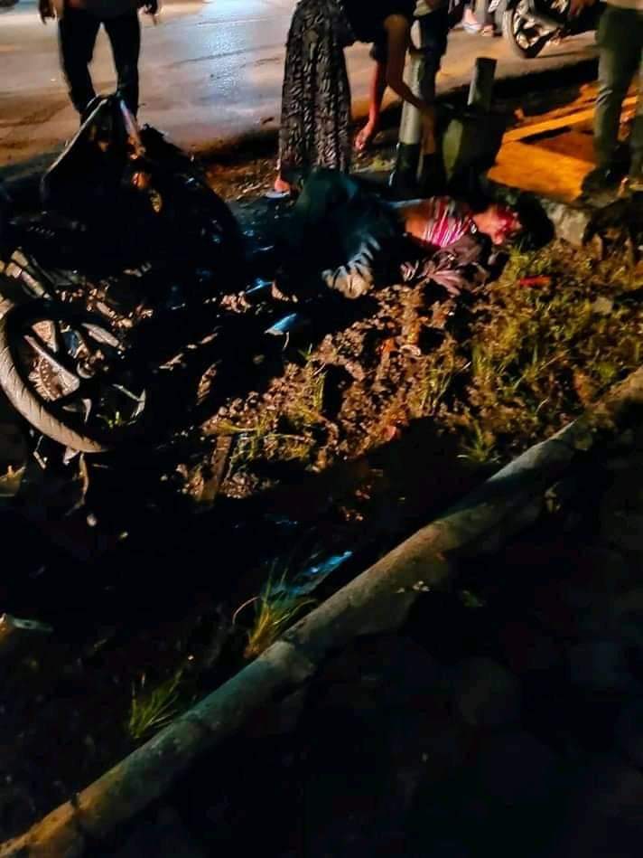 Korban kecelakaan mobil yang dikendarai dalam kondisi mabuk terkapar di jalan. Foto : polres batola