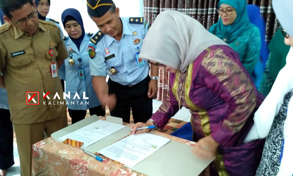 Penandatanganan dilakukan Ketua TP PKK Kabupaten Banjar Hj Raudathul Wardiyah dan Kepala Lapas Perempuan Kelas II Martapura Yunengsih. (rendy)