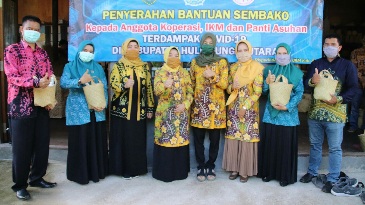 Pengrajin IKM Terima Bantuan Sembako dari Dekranasda HSU