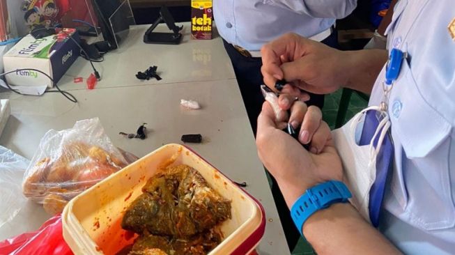 Usai dilakukan pemeriksaan lebih lanjut, petugas pun menemukan serbuk kristal putih yang ditemukan di dalam lauk tersebut dan diduga narkoba.
