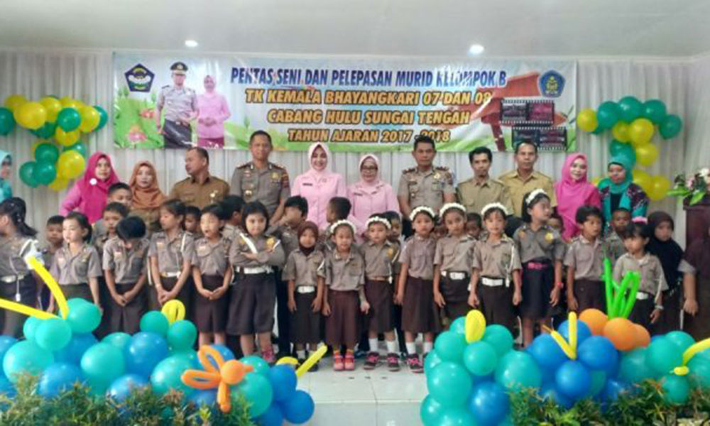 PARINGIN, Polres Hulu Sungai Tengah (HST) dan Yayasan Kemala Bhayangkari Cabang HST menyelenggarakan acara pentas seni dan pelepasan murid. Acara yang digelar Senin (7/5) pukul 09.30 Wita ini, dimeriahkan berapa tampilan siswa Kelompok B dan guru TK Kemala Bhayangkari 07 dan 08 Cabang HST.