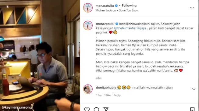 Mona Ratuliu merasakan duka mendalam. Salah satu sahabatnya, Hilman Hariwijaya meninggal dunia. Bukan hanya sekadar teman, sosoknya merupakan penulis dari cerita Lupus.