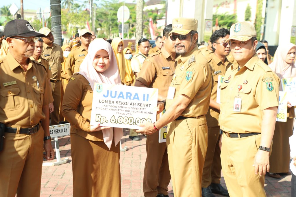 Piagam penghargaan Gubernur Kalimantan Selatan dan uang pembinaan dari Pemkab HSU tersebut diserahkan Penjabat (Pj) Bupati HSU Zakly Asswan di sela apel gabungan, Senin (2/9/2024) pagi.