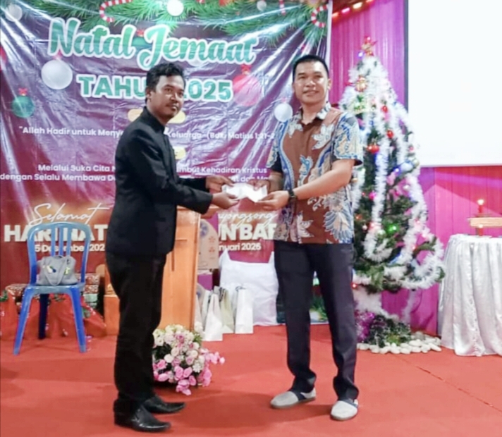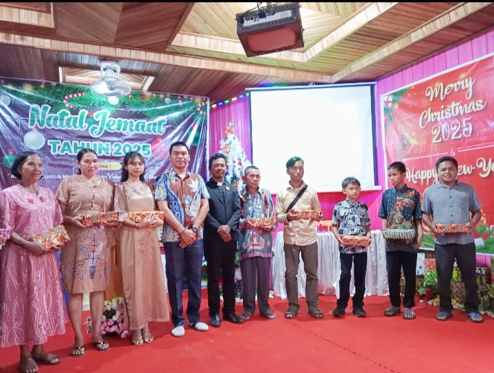 KANALKALIMANTAN.COM, KUALA KAPUAS – Kepala Desa (Kades) Manusup, Rinto menghadiri perayaan natal bersama jemaat GKE Desa Manusup, Kecamatan Mantangai, Kabupaten Kapuas, Sabtu (20/12/2025).