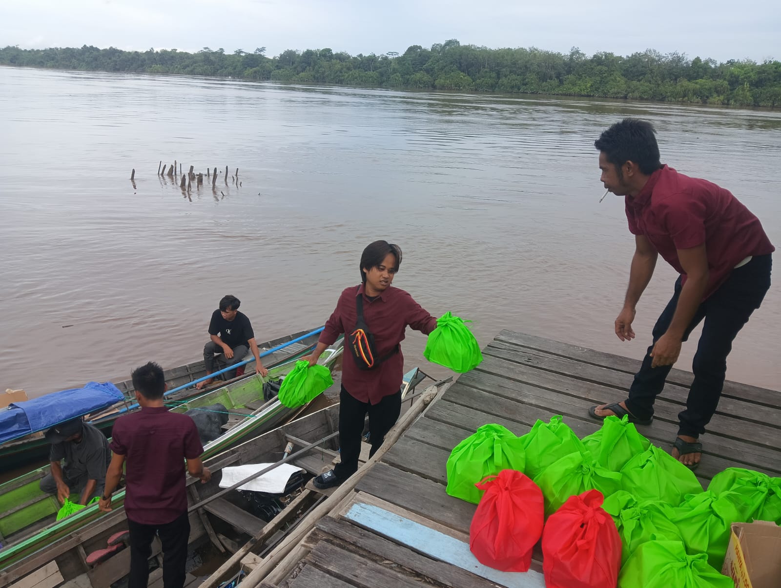 Pada kegiatan perayaan Natal, Kepala Desa Tarantang Amir memberikan bantuan tali asih berupa sembako kepada para Lansia. (Kanalkalimantan.com/ags)