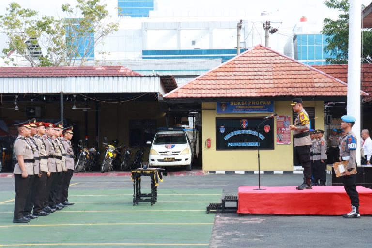 Apel serah terima jabatan dipimpin langsung Kapolresta Banjarmasin, Kombes Pol Sabana Atmojo SIK MH, Selasa (14/5/2024) di halaman Mapolreta Banjarmasin.