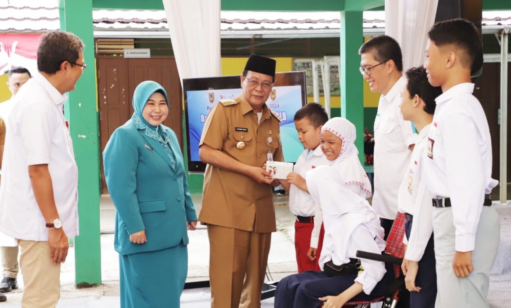 KANALKALIMANTAN.COM, MARTAPURA – Gubernur Kalimantan Selatan (Kalsel) H Sahbirin Noor didampingi Ketua TP PKK Kalsel Hj Raudatul Jannah hadiri puncak peringatan Hari Indonesia Menabung 202. Keduanya disambut antusias para pelajar Sekolah Luar Biasa Negeri (SLBN) 2 Martapura, Kabupaten Banjar, Selasa (6/8/2024) pagi.