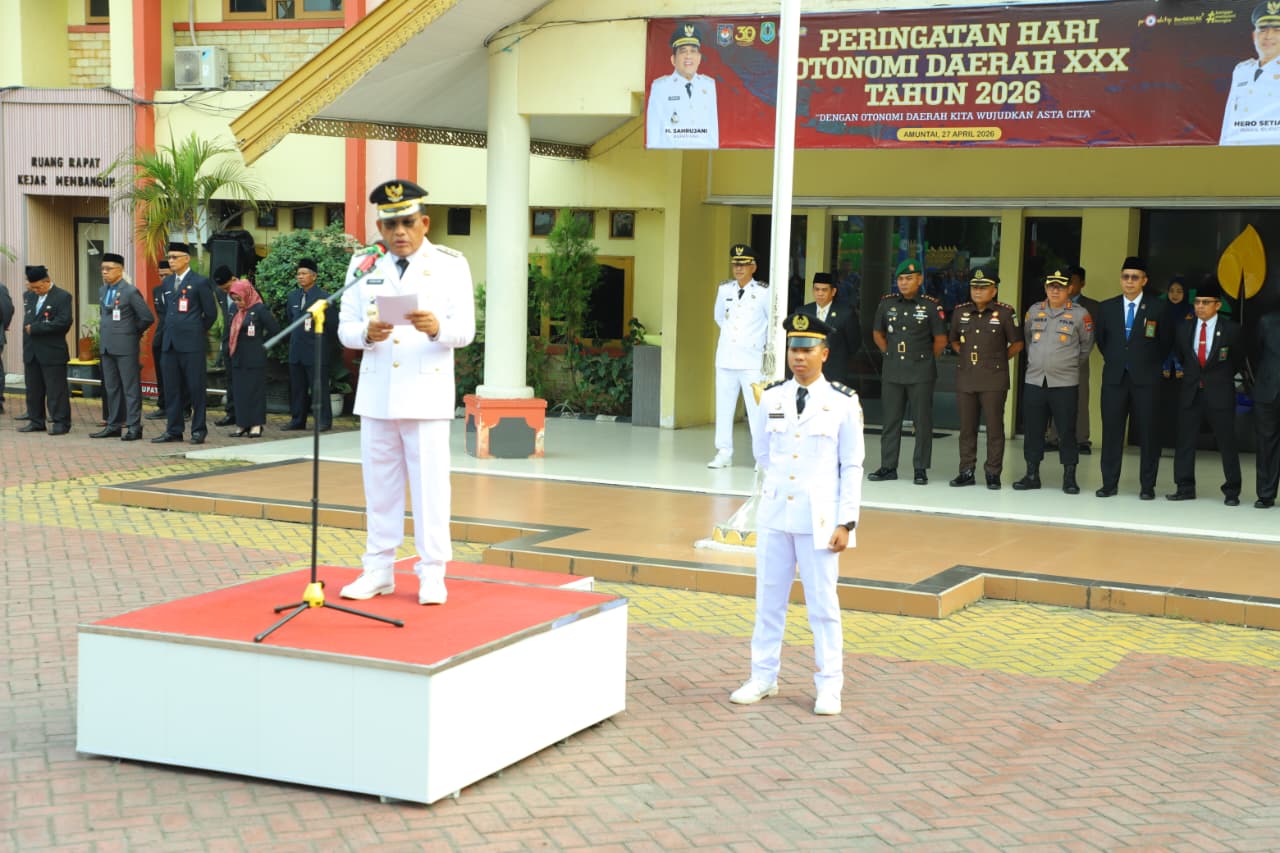 Demikian dikatakannya saat menyampaikan pesan Menteri Dalam Negeri dalam upacara peringatan Hari Otonomi Daerah (Otda) XXX tahun 2026 di halaman kantor Bupati HSU, Senin (27/4/2026) pagi.