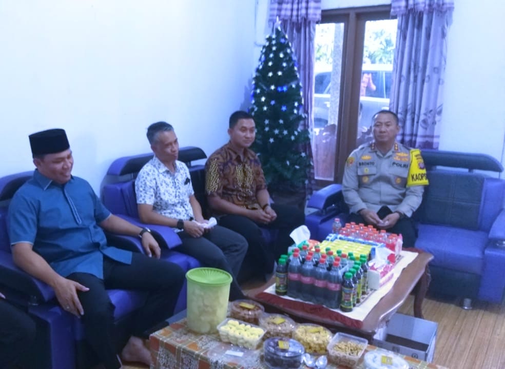 Kapolres Lamandau Polda Kalteng AKBP Bronto Budiyono bersama Bupati Lamandau H Hendra Lesmana, dan Dandim 1017/Lmd Letkol Inf Dwi Dipoyono berkunjung ke rumah Ketua DPRD Lamandau dan Ketua PGI Lamandau, Minggu (25/12/2022) siang.