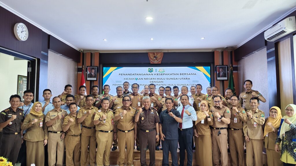 KANALKALIMANTAN.COM, AMUNTAI – Pemerintah Kabupaten Hulu Sungai Utara (HSU) bersama Kejaksaan Negeri (Kejari) HSU menandatangani kesepakatan bersama langkah strategis dalam memperkuat sinergi antar lembaga di bidang penegakan hukum, pencegahan korupsi, serta peningkatan kualitas pelayanan publik, Senin (30/6/2025).