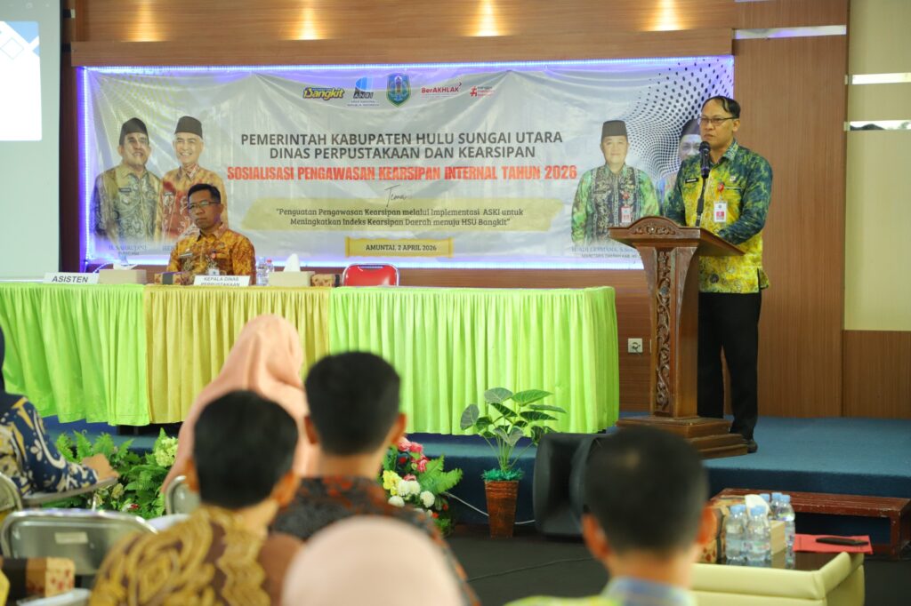 KANALKALIMANTAN.COM, AMUNTAI – Komitmen menjaga tertib administrasi pemerintahan, Dinas Perpustakaan dan Kearsipan (Dispersip) Kabupaten Hulu Sungai Utara (HSU) menggelar sosialisasi pengawasan kearsipan internal, Kamis (2/4/2026).