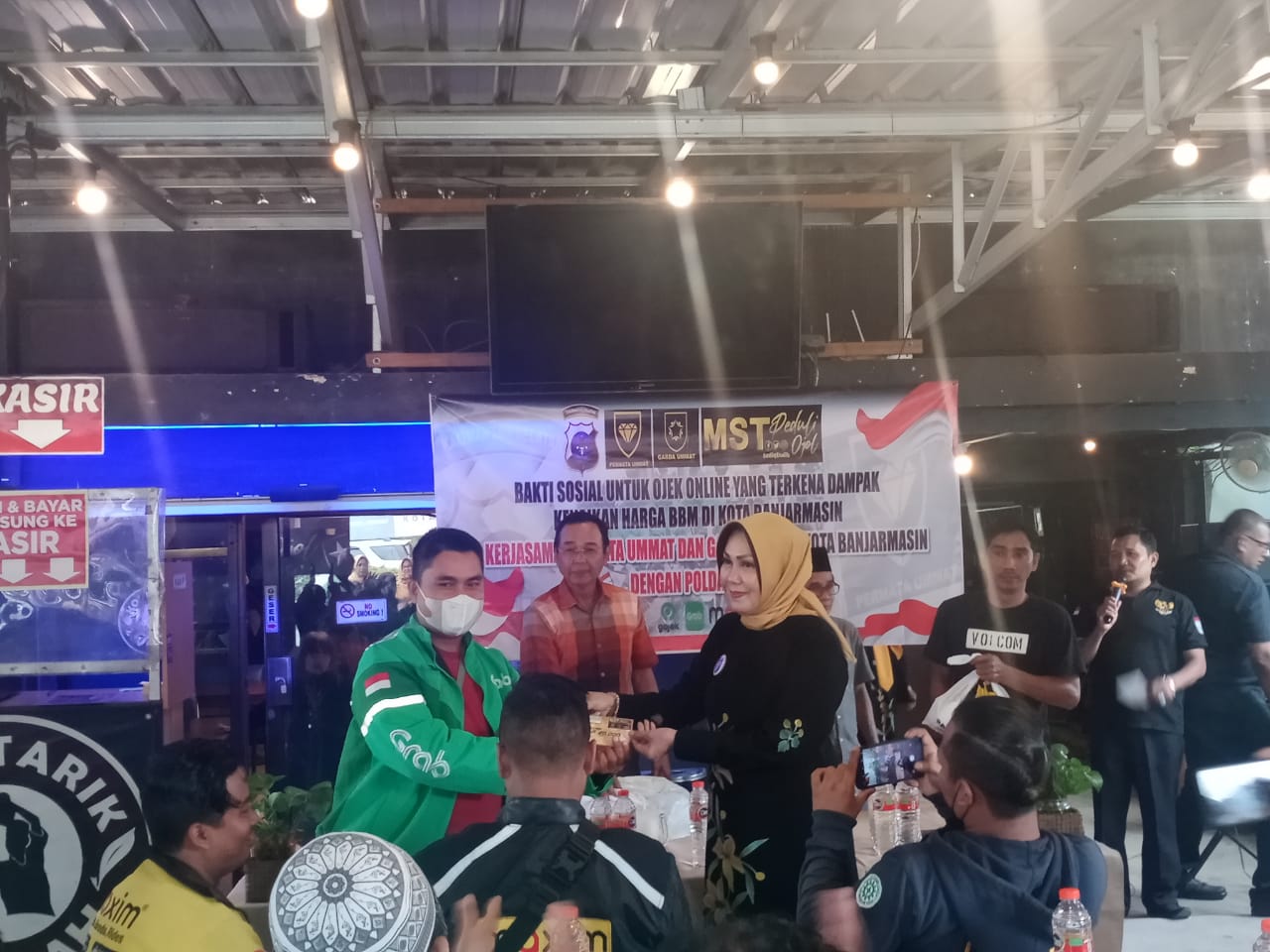 Puluhan ojek online dari Grab, Gojek, dan Maxim menerima bantuan berupa sembako dan voucher BBM Gratis pada kegiatan yang digelar Rabu (21/9/2022) di Jalan S Parman samping Polda Kalimantan Selatan tersebut.